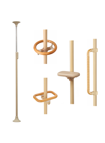 つっぱり型手すり 利用者負担(月額) 1割:300円~ 2割:600円~ 3割:900円~ カテゴリー: 手すり 説明 説明 基本ポールを特殊なすべり止めで固定する突っ張り型の手すりです。基本のポールとオプション付属品の組み合わせにより、歩く・立つ・座る・段差の上り降りなどの生活動作をサポートします。 関連商品 屋外用置き型手すり トイレ用手すり 屋内置き型手すり 上がりかまち用手すり